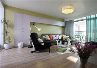 利用精致简约的家饰打造出独有的空间美学,并与实用性能相结合。素雅的色调,温润的质感, 烟灰色的沙发,木元素的家具,绿植以及装饰画的点缀,回归轻松日常为基础,适度保留空间弹性,营造出低彩透明感,让人拥有在家就想要放松的氛围。